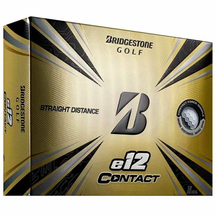 The new Bridgestone e12 CONTACT is straight distance you can see! The true game-changer is a new CONTACT Force dimple, which features a unique structure with a raised area in the center and an outer portion that slows horizontal rotation during flight. The raised area allows for 38% more contact with the clubface at impact than traditional dimples, yielding a much more efficient transfer of energy and improved core activation. The result is faster ball speed and straight distance with every club in the bag. Available in white, matte green, matte red, and matte yellow colors.